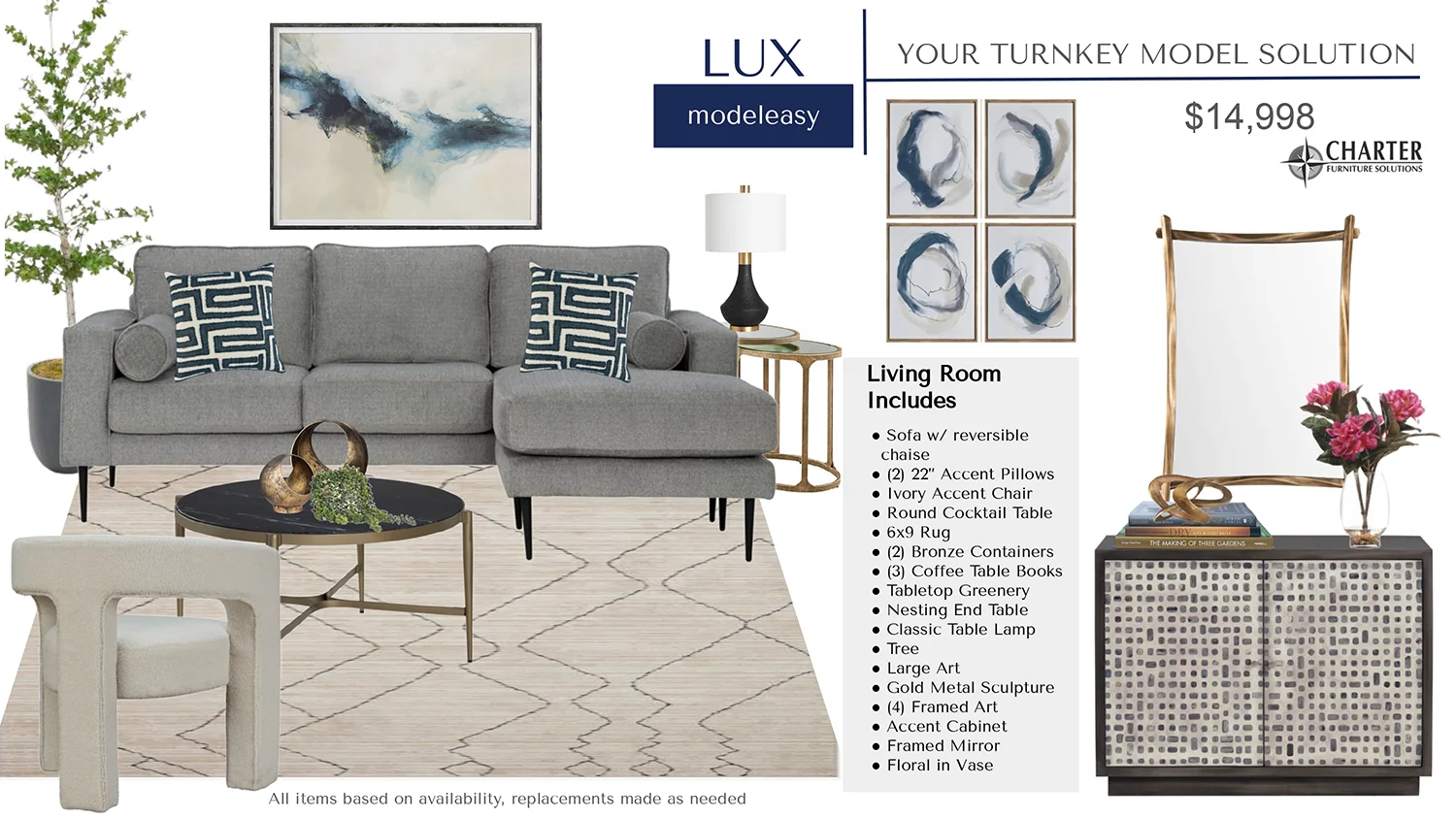 The Lux ModelEasy package brings a touch of elegance to your property. With its harmonious blend of classic design, modern accents, and luxurious details, Lux creates a welcoming and sophisticated atmosphere that will leave a lasting impression on prospective residents.